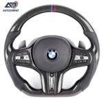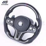 اختبر العودة إلى الخياطة والتفاعل الحسي الذي تقدمه هذه العجلة. عجلة القيادة الرياضية الكاملة من ألياف الكربون بتصميم مزدوج أسود من الجلد من بي إم دبليو، تقدم لك كل ما تحتاجه لتجعل تجربة قيادتك أكثر متعة وتشويقًا.